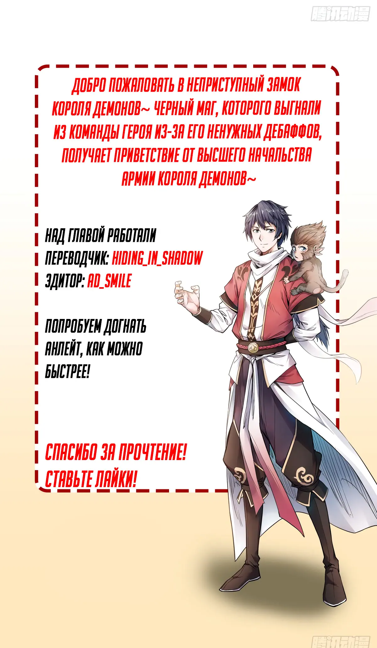 Добро пожаловать в неприступный замок Владыки демонов ~Тёмный маг, что изгнан из группы героя за свои «бесполезные» дебаффы, принимает приглашение на должность командующего армии Владыки демонов~ (Nankoufuraku no Maoujou e Youkoso - Debuff wa Fuyou to Yuusha Party o Oidasareta Kuro Madoushi, Maougun no Saikou Kanbu ni Mukaerareru) - 1.1 Глава