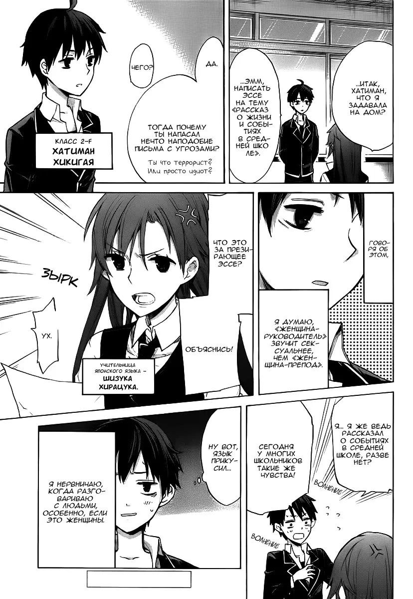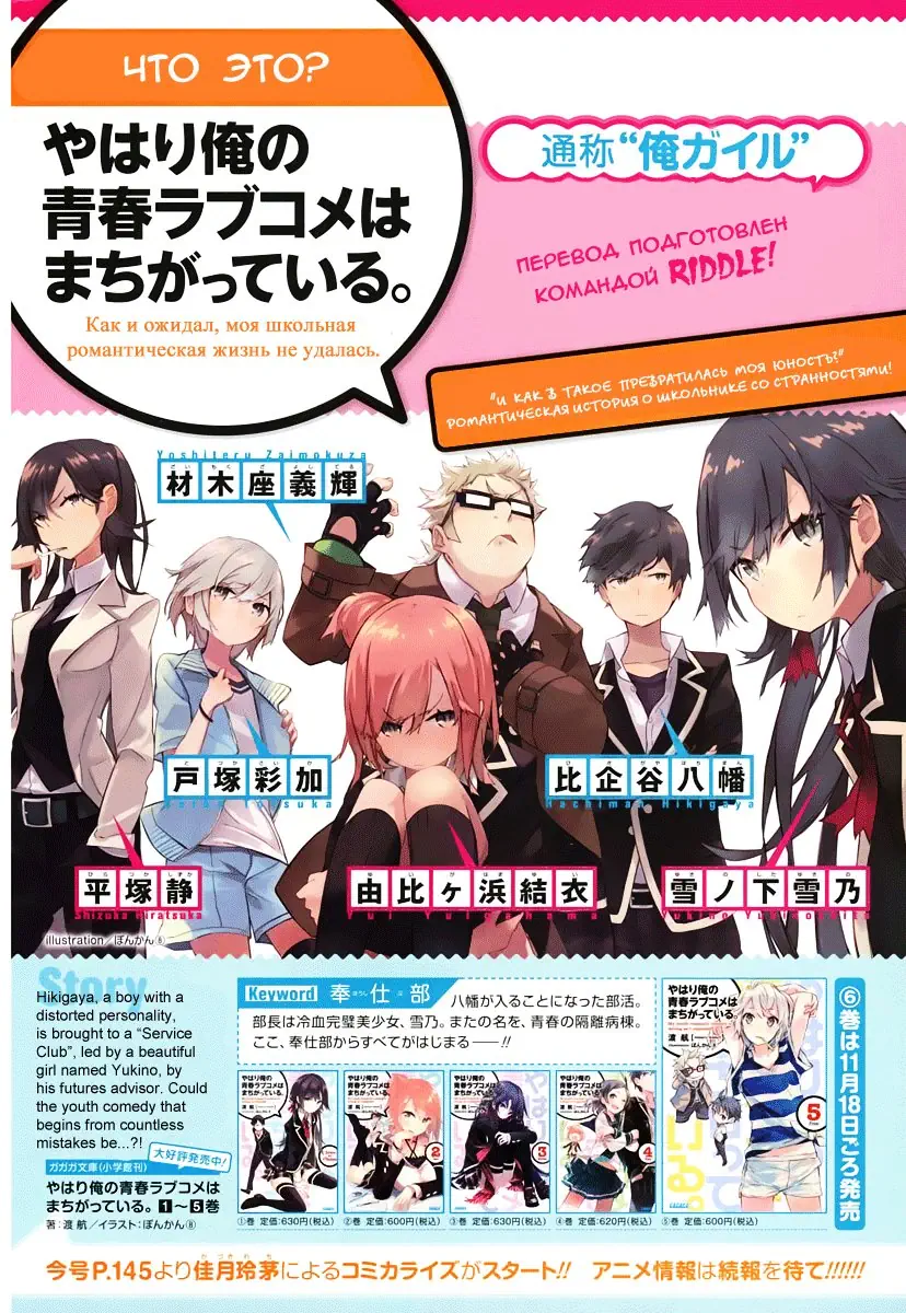 Как и ожидалось, моя школьная романтическая жизнь не удалась (Yahari Ore no Seishun Rabukome wa Machigatte Iru. - Mougenroku) - 1 Глава