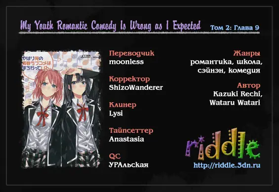 Как и ожидалось, моя школьная романтическая жизнь не удалась (Yahari Ore no Seishun Rabukome wa Machigatte Iru. - Mougenroku) - 9 Глава