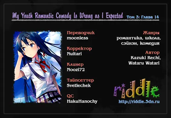 Как и ожидалось, моя школьная романтическая жизнь не удалась (Yahari Ore no Seishun Rabukome wa Machigatte Iru. - Mougenroku) - 14 Глава