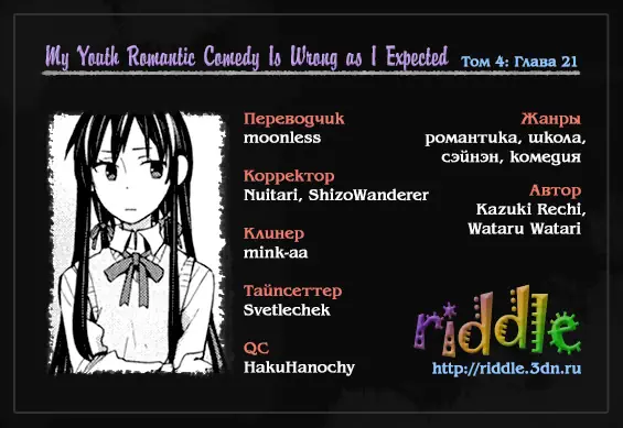 Как и ожидалось, моя школьная романтическая жизнь не удалась (Yahari Ore no Seishun Rabukome wa Machigatte Iru. - Mougenroku) - 21 Глава