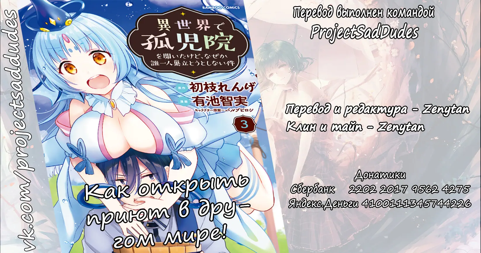 3. Как открыть приют в другом мире! (Isekai de Kojiin wo Hiraitakedo, nazeka Darehitori Sudatou to Shinai Ken)