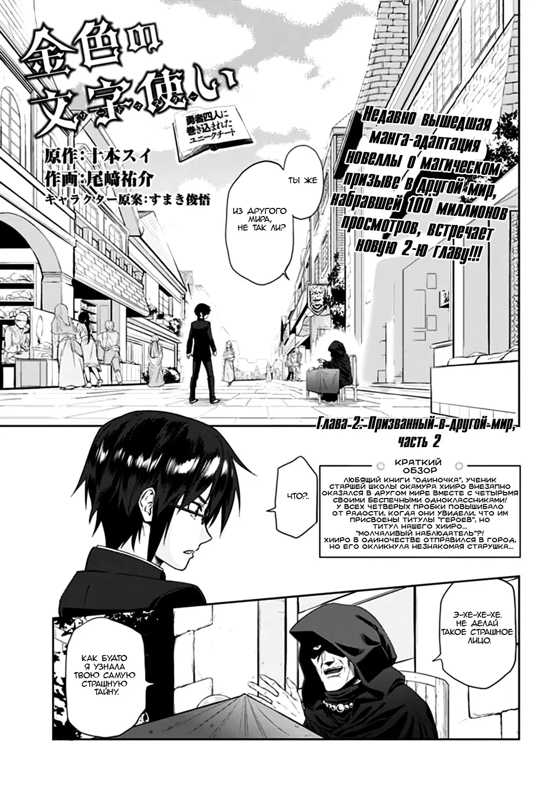 Мастер золотых слов: Четыре героя и Наблюдатель с Уникальным читом (Konjiki no Moji Tsukai - Yuusha Yonin ni Makikomareta Unique Cheat) - 2 Глава