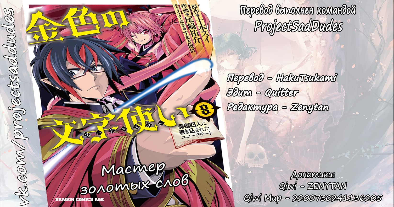3. Мастер золотых слов: Четыре героя и Наблюдатель с Уникальным читом (Konjiki no Moji Tsukai - Yuusha Yonin ni Makikomareta Unique Cheat)