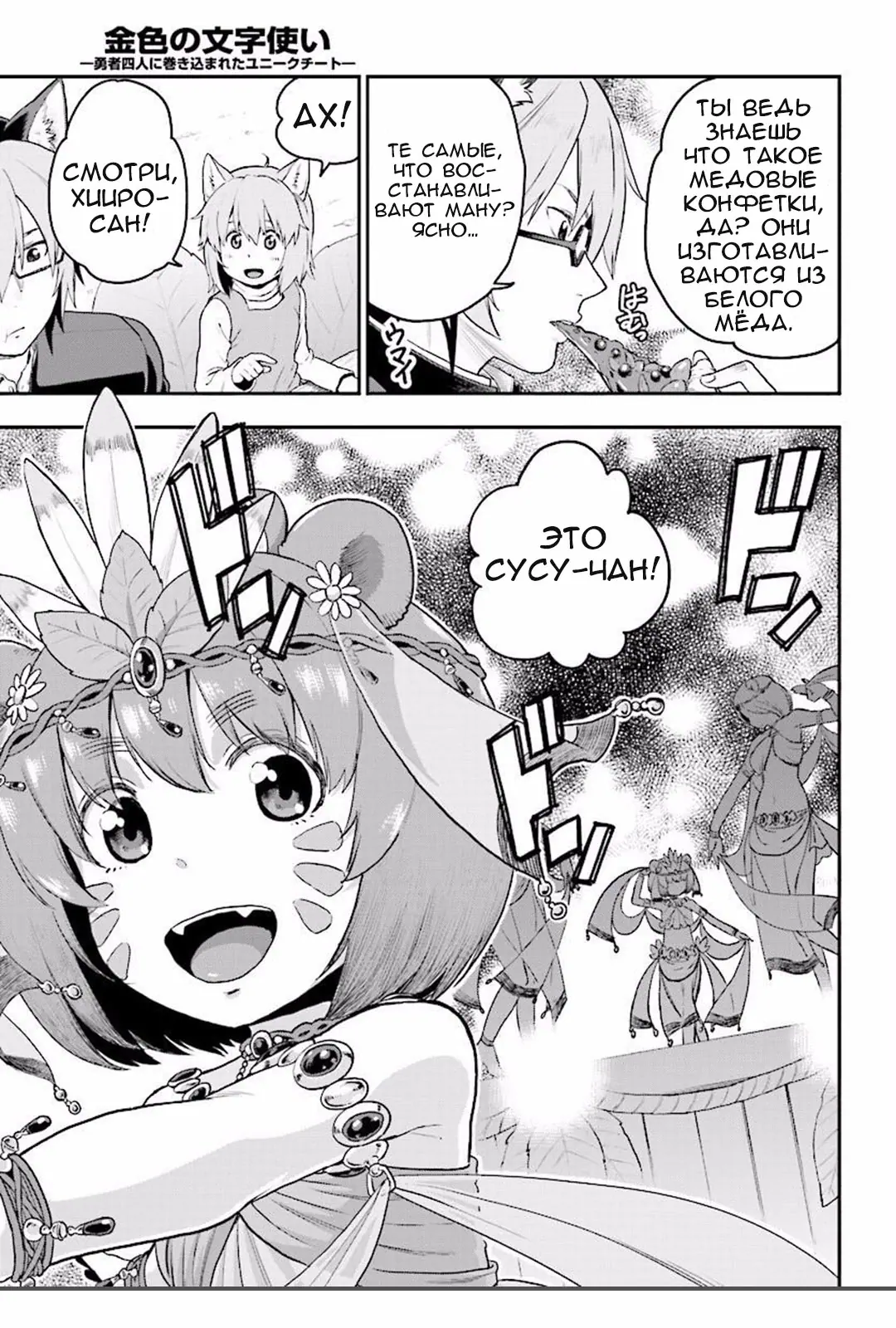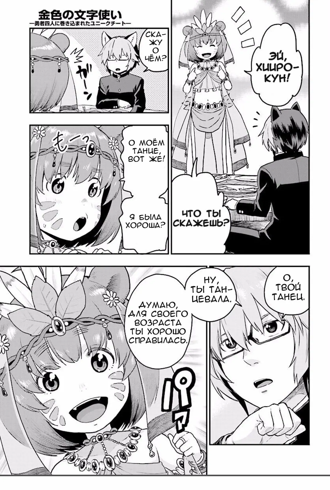 3. Мастер золотых слов: Четыре героя и Наблюдатель с Уникальным читом (Konjiki no Moji Tsukai - Yuusha Yonin ni Makikomareta Unique Cheat)