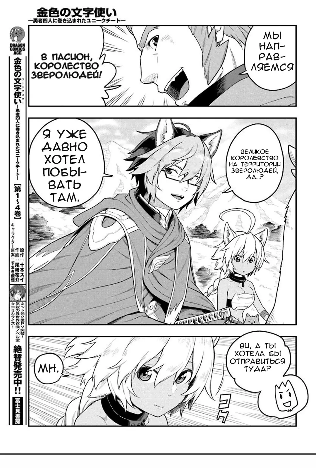 3. Мастер золотых слов: Четыре героя и Наблюдатель с Уникальным читом (Konjiki no Moji Tsukai - Yuusha Yonin ni Makikomareta Unique Cheat)