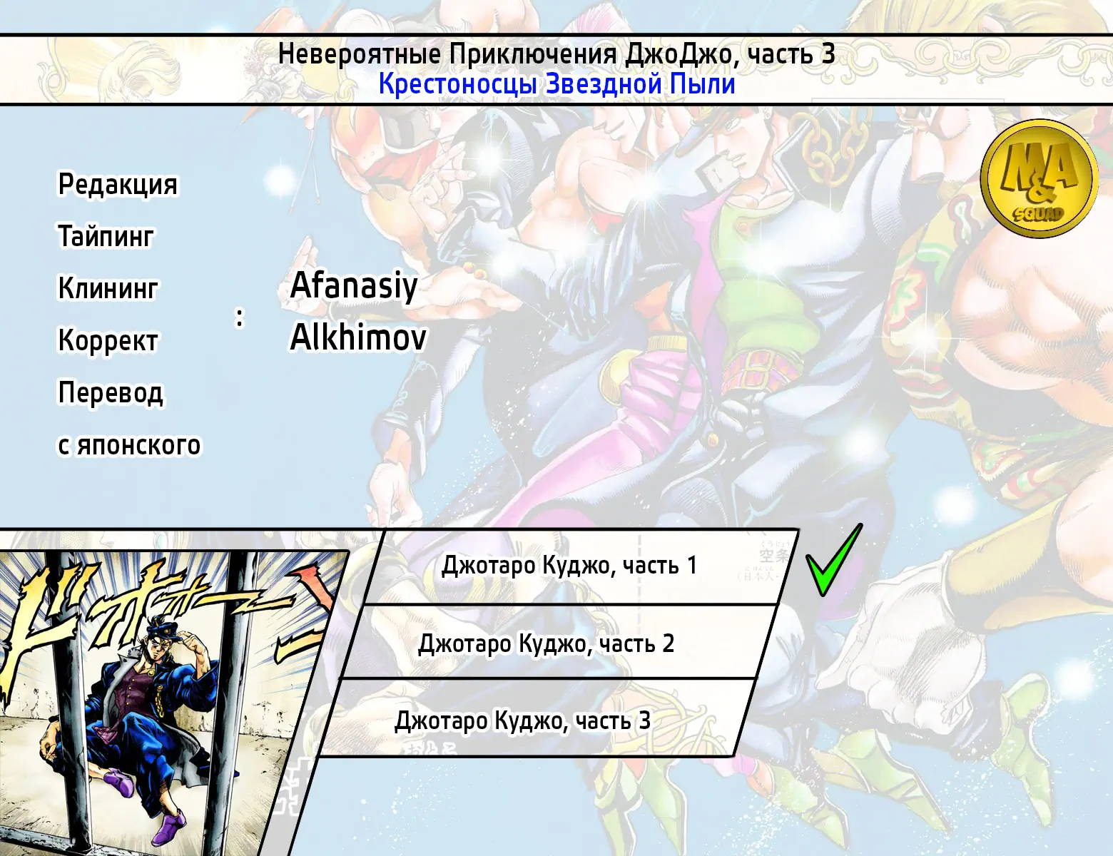 Невероятные Приключения ДжоДжо часть 3: Крестоносцы Звездной Пыли (В цвете) (Jojo no Kimyo na Boken part 3: Sutadasuto Kuruseidāsu (Colored)) - 1 Глава