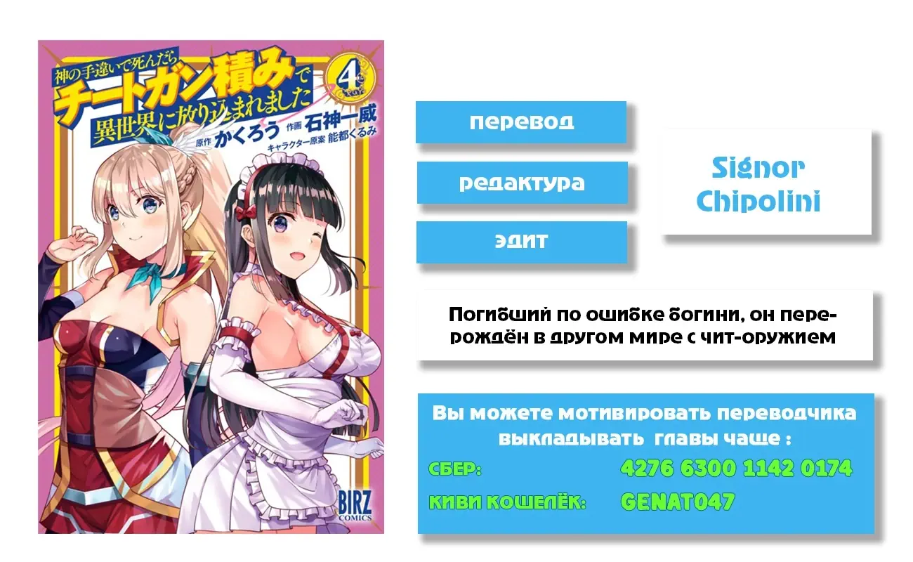 3. Погибший по ошибке богини, он перерождён в другом мире с чит-оружием (Kami no Techigai de Shindara Zumi de Isekai ni Hourikomare Mashita)