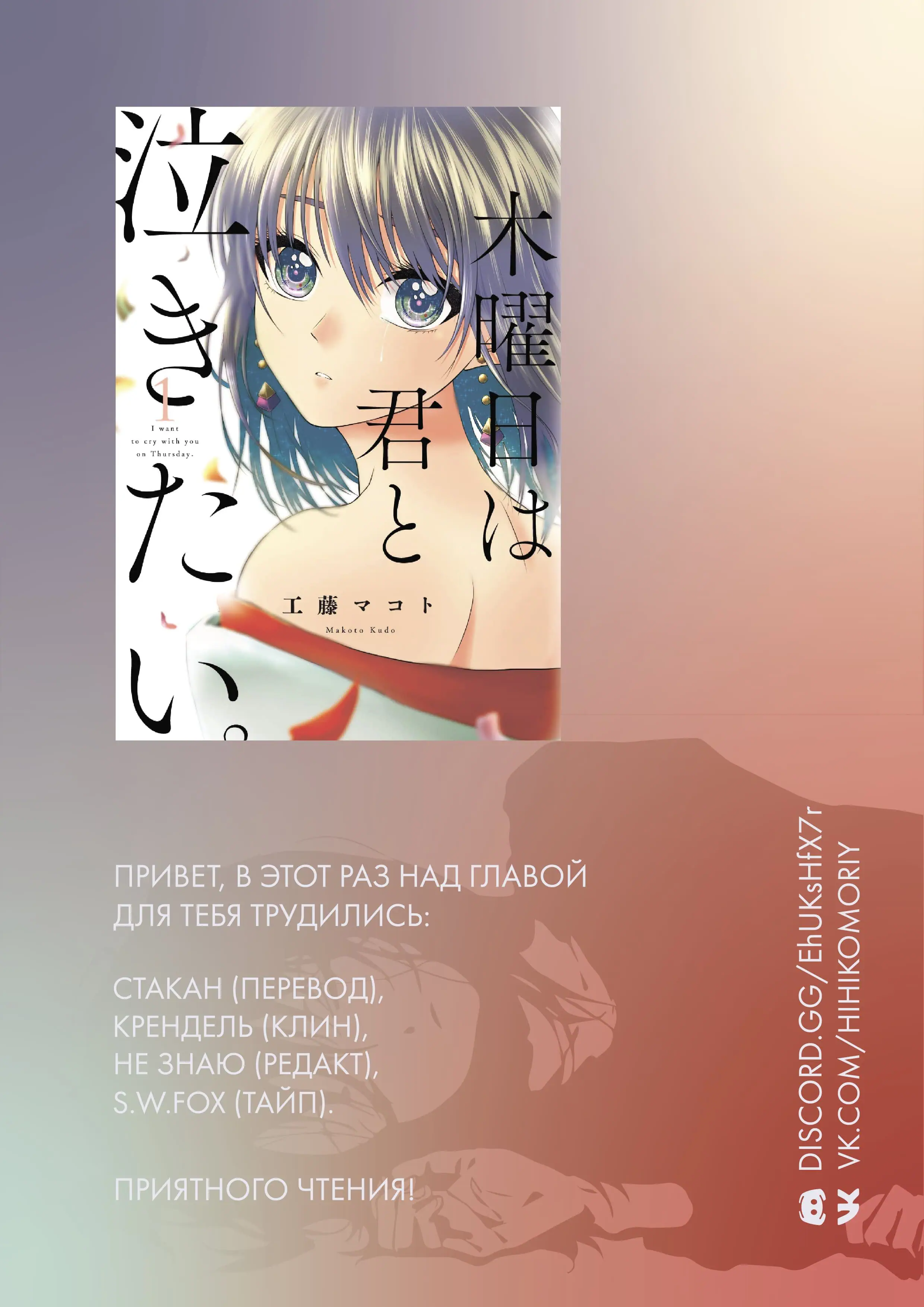 Я хочу плакать с тобой в четверг (Mokuyoubi wa Kimi to Nakitai) - 8 Глава